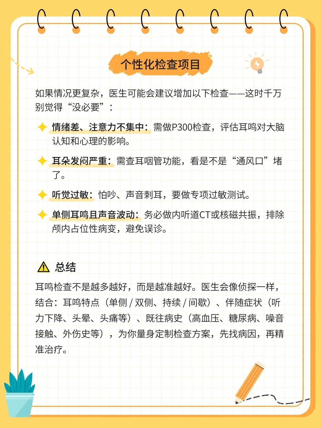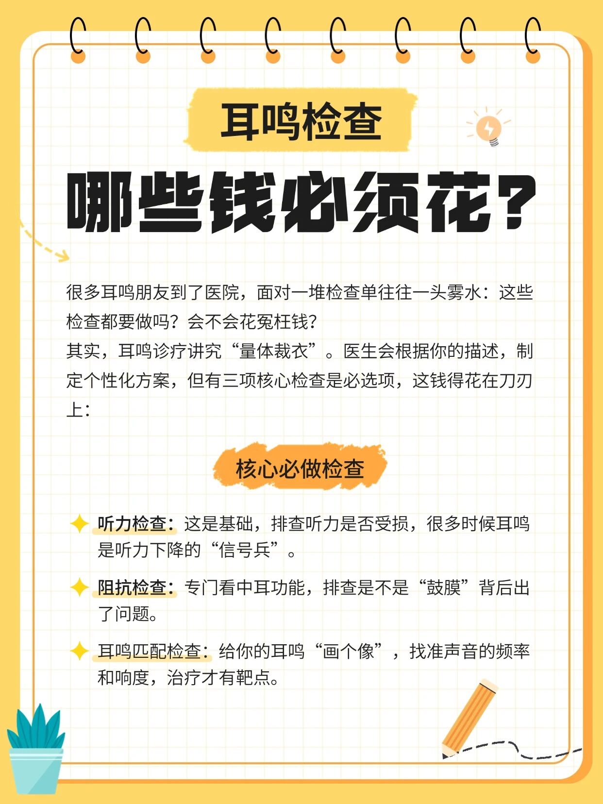 耳鸣检查不是越多越好,而是越准越好。医生会像侦探一样,结合耳鸣特点、伴随症状、既往病史等,为你量身定制检查方案,先找病因,再精准治疗,反而能避免后续花冤枉钱。